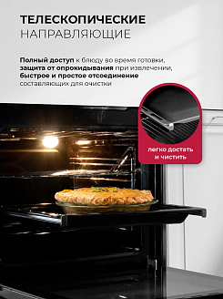 Духовой шкаф LEX EDP 610 Wide Series — сочетание удобства и функциональности Эта модель серии Wide выделяется стильной широкой ручкой, наличием 10 программ и смешанным управлением с LED экраном. Вместительная камера объемом 72 литров, обеспечит удобство и комфорт в использовании. Тройное стекло дверцы гарантирует отличную теплоизоляцию, сохраняя стабильную температуру внутри шкафа. Хромированные телескопические направляющие — удобство и безопасность в использовании Духовой шкаф LEX EDP 610 Wide Series оснащен хромированными телескопическими направляющими, которые обеспечивают легкий доступ к блюдам во время готовки. Они позволяют безопасно и удобно извлекать противни, минимизируя риск ожогов и облегчая процесс приготовления. Широкая цветовая палитра для идеального сочетания с вашим интерьером Модель LEX EDP 610 Wide Series доступна в различных цветовых решениях: White (белый), Black (черный), Dark Inox (темная нержавеющая сталь), Grey (серый) и Inox (нержавеющая сталь). Такой выбор позволяет подобрать духовку, которая гармонично впишется в дизайн вашей кухни. Black (черный) Черный цвет придает духовке элегантность и строгость, делая ее стильным акцентом в современном интерьере. LEX EDP 610 Wide Series — 10 режимов для ваших кулинарных экспериментов Широкий выбор режимов позволяет адаптировать духовку под любой рецепт. Среди них — традиционный нагрев, конвекция с кольцевым нагревательным элементом, гриль и размораживание, что делает модель универсальной для готовки любых блюд. Мощность гриля 1200 Вт и температурный диапазон от 50 до 270°C обеспечивают быстрое и качественное приготовление пищи с идеальной текстурой. Точная настройка для удобного использования Смешанное управление сочетает сенсорные и механические элементы, обеспечивая точную регулировку параметров. LED-дисплей отображает все необходимые данные, а цифровой таймер помогает задать точное время готовки. Хромированные телескопические направляющие добавляют удобства, позволяя безопасно размещать и извлекать противни на нужной высоте. Безопасность и простота ухода Тройное стекло дверцы защищает от перегрева, а термостат обеспечивает дополнительную надежность. Каталитическая система очистки значительно облегчает уход за духовкой, помогая легко удалять жировые загрязнения. Быстросъемная дверца и набор телескопических направляющих делают процесс эксплуатации комфортным и безопасным. Идеальные результаты для каждого блюда Благодаря режимам конвекции и гриля, блюда готовятся равномерно и получают аппетитную корочку. Духовой шкаф с энергоэффективностью класса A позволяет готовить не только вкусно, но и экономично, делая этот процесс максимально приятным и удобным.