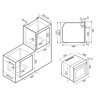 Встраиваемая часть (ВхШхГ), мм: 577х555х500