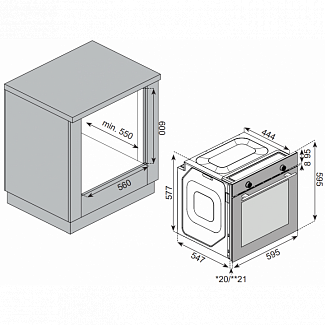 Размер ниши для встраивания в столешницу (ШхГхВ), мм: 560х550х600