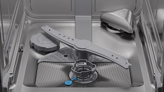 Во всех посудомоечных машинах ActiveWater циркуляция воды осуществляется на 5 уровнях: 2 уровня (вверх и вниз) в нижнем коромысле; 2 уровня (вверх и вниз) в верхнем коромысле; 1 верхний уровень – отдельный душ на потолке моечной камеры. Все это помогает воде проникать во все, даже самые удаленные, уголки моечной камеры, обеспечивая самый высокий класс эффективности мытья посуды.