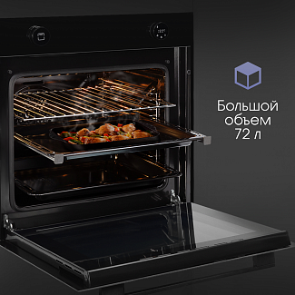 Конвекционный вентилятор обеспечивает постоянную циркуляцию горячего воздуха по всей камере, что позволяет равномерно запекать блюдо со всех сторон, а также экономить время на приготовление. Режим конвекции особенно оценят любители приготовления выпечки.