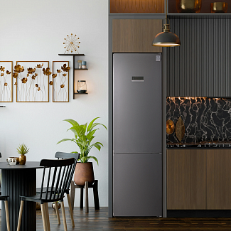 Холодильник с морозильником Weissgauff CBN2WC2C2 представлен в корпусе серого цвета. В модели реализована система Full No Frost. За счет принудительной циркуляции холодного воздуха она предотвращает образование наледи на стенках и необходимость регулярного размораживания. Технология Multi Air Flow перенаправляет потоки холодного воздуха в обеих камерах, сохраняет свежесть продуктов и защищает их от высушивания. Отдельная зона с повышенной влажностью продлевает свежесть овощей, фруктов, ягод, зелени.Сенсорная панель с цифровым дисплеем отображает параметры работы холодильника Weissgauff CBN2WC2C2 и гарантирует интуитивное управление. Функция «Суперзаморозка» резко снижает температуру в морозильнике для быстрого замораживания свежих продуктов после покупок. Фильтр-дезодоратор защищает от неприятных запахов и плесени. Открытие дверей на 90° обеспечивает удобное извлечение полок и ящиков в условиях ограниченного пространства. Перенавешиваемые двери предусматривают выбор стороны их открывания в зависимости от планировки на кухне. LED-подсветка равномерно освещает содержимое холодильной камеры.