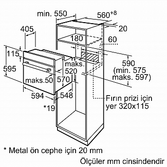 Минимальная высота ниши для встраивания: 575 мм