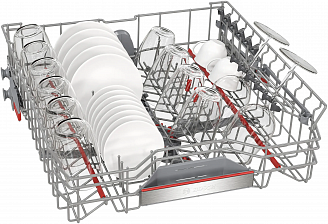 Extra Clean Zone: тщательная очистка посуды в верхнем коробе. Засохшие остатки пищи на посуде остались в прошлом. Зона интенсивной очистки Bosch Extra Clean Zone обеспечивает глубокое мытье посуды на верхней полке. Три вращающиеся форсунки тщательно замачивают посуду. Функция настолько эффективна, что не требуется дополнительное моющее средство или повышение температуры. Активируется нажатием кнопки.
