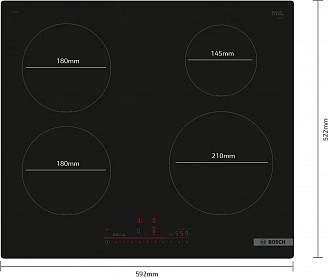 Размеры варочных зон: 2 x (18,0 см Ø), 1 x (14,5 см Ø), 1 x (21,0 см Ø)