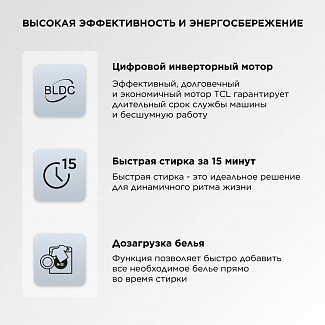 Стиральную машину TCL TWRF-606W10W1 можно запрограммировать на отсрочку запуска до 24 часов, чтобы она закончила цикл стирки к строго определенному времени. Благодаря системе автобаланса устройство самостоятельно распределяет белье по барабану перед началом отжима, чтобы снизить уровень шума. За счет автовзвешивания модель предоставляет более точное время, которое займет цикл стирки. Панель управления можно заблокировать, чтобы дети не смогли сбросить установленные настройки работы устройства.