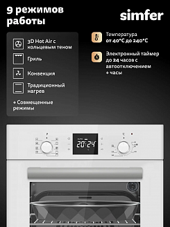 - 9 режимов работы, включая гриль и конвекцию, для разнообразного приготовления блюд