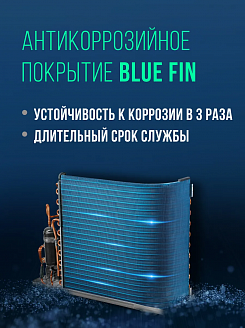 Особенности кондиционера: Авторестарт, Защита от замерзания, Пульт ДУ, Регулировка направления воздушного потока, Таймер включения, Таймер выключения, Wi-Fi модуль, Антикоррозийное покрытие, Скрытый дисплей, Диагностика неисправностей
