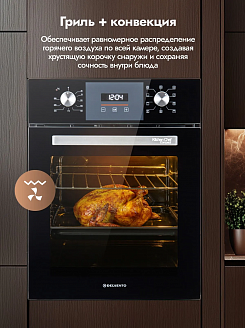 Конвекционный вентилятор обеспечивает постоянную циркуляцию горячего воздуха по всей камере, что позволяет равномерно запекать блюдо со всех сторон, а также экономить время на приготовление. Режим конвекции особенно оценят любители приготовления выпечки.