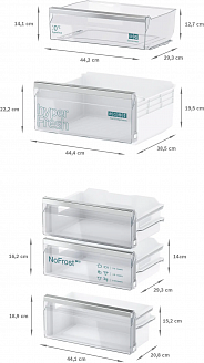 Увеличенное пространство для хранения значительных объемов фруктов и овощей. Для мяса и рыбы предусмотрено отдельное отделение с независимой подачей холодного воздуха, что позволяет дольше сохранять продукты в оптимальном состоянии. Комбинация увеличенного объема и надлежащих условий хранения.