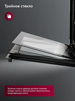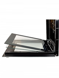 Особенности духовки, плиты: Вентилятор охлаждения, Дисплей, Полностью стеклянная внутренняя дверца, Хромированные направляющие