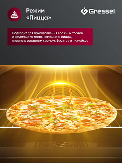 Режимы работы: Нижний нагрев, Размораживание, Гриль, Гриль + конвекция, Нижний нагрев + Турбо (Пицца), Верхний + нижний нагрев + конвекция, Турбо режим, Верхний + нижний нагрев