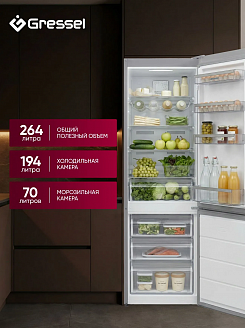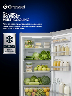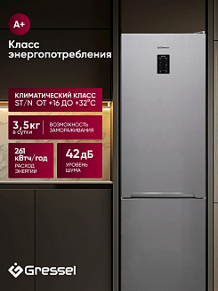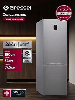Холодильник двухкамерный GRESSEL UDM46100 264 л, система охлаждения No frost, cуперохлаждение, суперзаморозка, экономичный режим, PurifAir, А+, серебристый