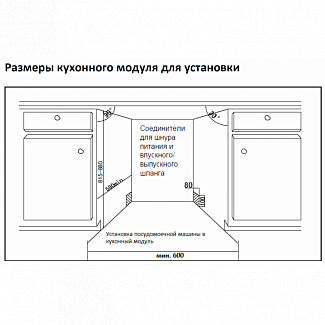 Размер ниши для встраивания (ШxГxВ), мм: 600 x 580 x 815-880