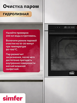 Данный метод очистки позволяет удалять жировые отложения, не используя при этом сильные химические вещества, которые могут повредить внутреннюю поверхность духовки. Устанавливаете режим, наливаете воду, которая медленно испаряясь, смягчает загрязнение и после протираете мягкой тряпкой.