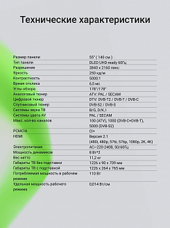 Технические характеристики LED телевизор Digma DM-LED55UBB40