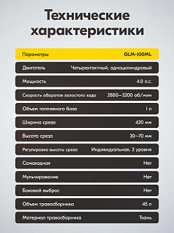 Технические характеристики Газонокосилка бензиновая Huter GLM-100ML