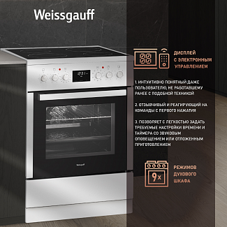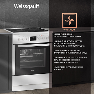 - Дизайн, выполненный в белом цвете, станет финальным штрихом в совершенстве великолепного облика этой модели. Каждый раз, взаимодействуя с вашей плитой от Weissgauff, вы будете чувствовать, что это не только функциональное устройство, но и настоящее украшение вашей кухни!