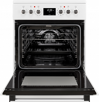 - Полностью электрическое подключение, при котором в данной модели одновременно сочетаются все плюсы электрической духовки и стеклокерамической рабочей поверхности, позволяя готовить на вашей кухонной плите без подключения к газу!