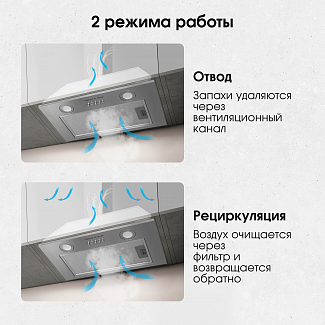 ● Работает как в режиме отвода, так и рециркуляции в зависимости от ваших потребностей.