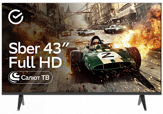 - Компактный интеллектуальный телевизор Sber – оптимальный выбор для небольших помещений или дачного дома: яркий экран, диагональ 43 дюйма, повышенное быстродействие системы и стильный безрамочный корпус.
