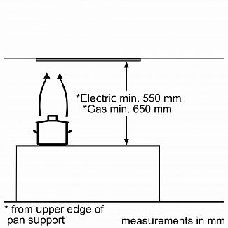 Минимальное расстояние над газовой варочной панелью: 650 мм