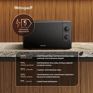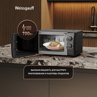 - Дизайн, выполненный в черном цвете, станет финальным штрихом в совершенстве великолепного облика этой модели. Каждый раз, взаимодействуя с вашей микроволновой печью от Weissgauff, вы будете чувствовать, что это не только функциональное устройство, но и настоящее украшение вашей кухни!