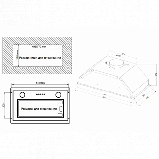 Размер ниши для встраивания (ШxГxВ), мм: 495x265x190