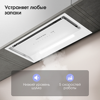 ● Уровень шума не более 61,1 дБ благодаря особой конструкции мотора и корпуса вытяжки.