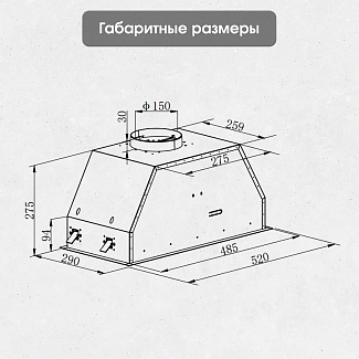 ● Настроить скорость работы вытяжки можно с помощью удобного, интуитивно понятного сенсорного управления. Подсветка рабочей зоны осуществляется светодиодной лампой.