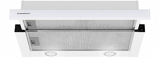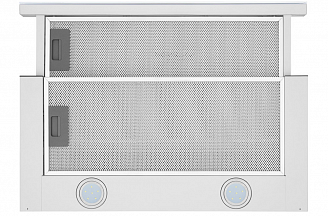 Корпус сделан из нержавеющей стали с качественным покрытием белого цвета. Фасад выдвижной панели из закаленного стекла выполнен в цвет корпуса. Два многослойных жироулавливающих алюминиевых фильтра легко вынуть из вытяжки и помыть при необходимости.