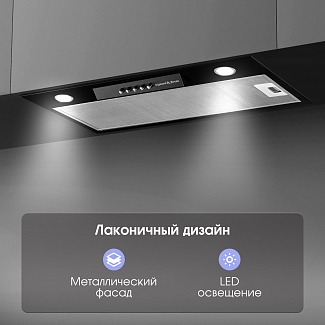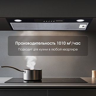 Эффективные размеры вытяжки и встраиваемая установка смогут сохранить стиль и дизайн интерьера без потери качества работы, так как производительность вытяжки составляет 1010 куб.м/час. Этого будет более, чем достаточно даже для больших кухонь.